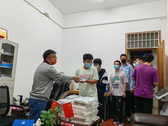 本次活动由2022级辅导员张维佐老师代表学院发放口罩到各位新生手中。口罩虽小,却能在疫情防控期间减少疫情的传播,为在校师生的生命安全筑起了一道防线,展现了学院对学生的关怀以及爱护,彰显了学院的人文关怀与对防疫的支持。