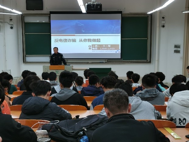 本次讲座分别从民警和银行的两个角度,深入地分析与探讨了如何预防电信诈骗以及如何追回被骗钱财等若干问题。曲所长从四个主题角度来讲解,主要分为讲了电信诈骗的定义、电信诈骗的普遍性、电信诈骗的防范方法以及警方在反诈路上的努力。银行角度分为三个主题,主要讲了贷款的相关概念、贷款平台的类型以及学生对于贷款的看法和选择。
