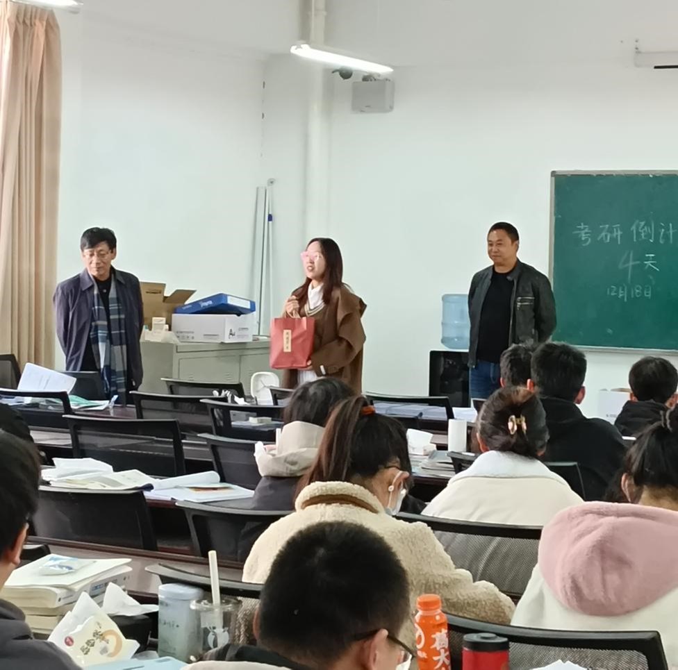 动员会上,段匡书记首先为考研学子加油打气,在考研即将到来之际,祝福在座的同学都能成功上岸。张力院长从“回首往事,从不言弃,读万卷书,行万里路”、“吾尽吾心,终亦不悔,天道酬勤,何事难为”、“物天学子,风华正茂,勇敢前行,前程似锦”三个方面,希望考研学子不要动摇自己的决心,争取一举上岸。两位领导的话语字字铿锵有力,牵动着考研学子的心。辅导员杨从英希望同学们带着“梦想火车票”乘坐考研“梦想号”,道阻且长,行则将至,祝愿同学们早日到达考研的终点站。