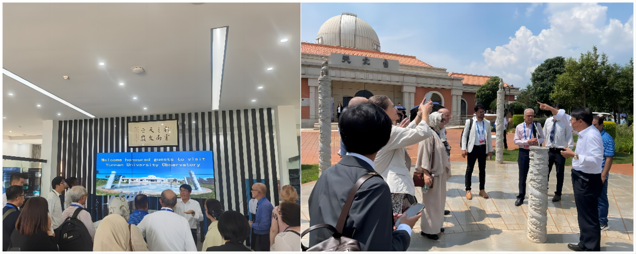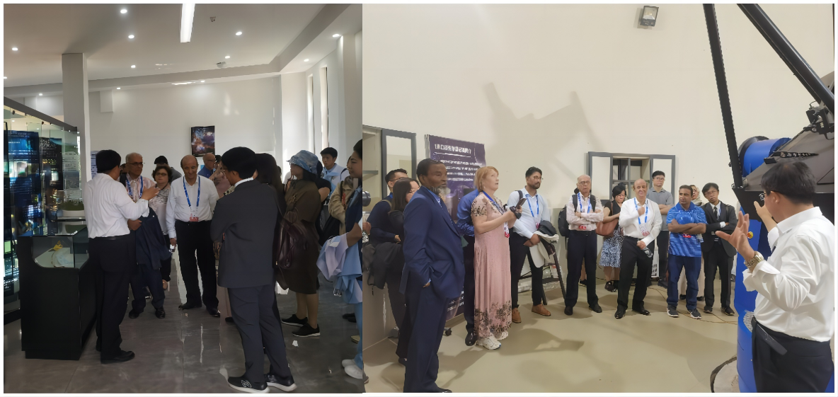 钱声帮教授带领嘉宾们依次参观了太阳历广场、12米射电望远镜、天象厅、科普展厅及1米光学望远镜等科普与科研平台,并详细介绍1米光学望远镜和12米射电望远镜在天文学教育、科学研究和科普中发挥的重要作用。嘉宾们对天文台的科普中心和科研平台表现出浓厚的兴趣,并给予了高度的赞美。“一带一路”国际科学教育协调委员会的参观访问将增进了解与友谊,积极促进“一带一路”科技文化交流与合作。