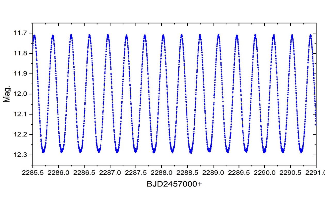 船帆座KV是一颗典型的行星状星云中心双星,其热亚矮星主星温度高达77000度,而红矮星伴星的温度仅为3400度。两子星极大的温度差使得次星正对热亚矮星的一面和背对的一面存在非常大的温差(即次星的“白天”和“黑夜”温差高达约400度,具有强反射效应)。所以即使两子星不发生掩食,随着双星的轨道运动,系统也会产生周期性的亮度变化(光变幅高达0.55个星等;如图1(下)所示)。