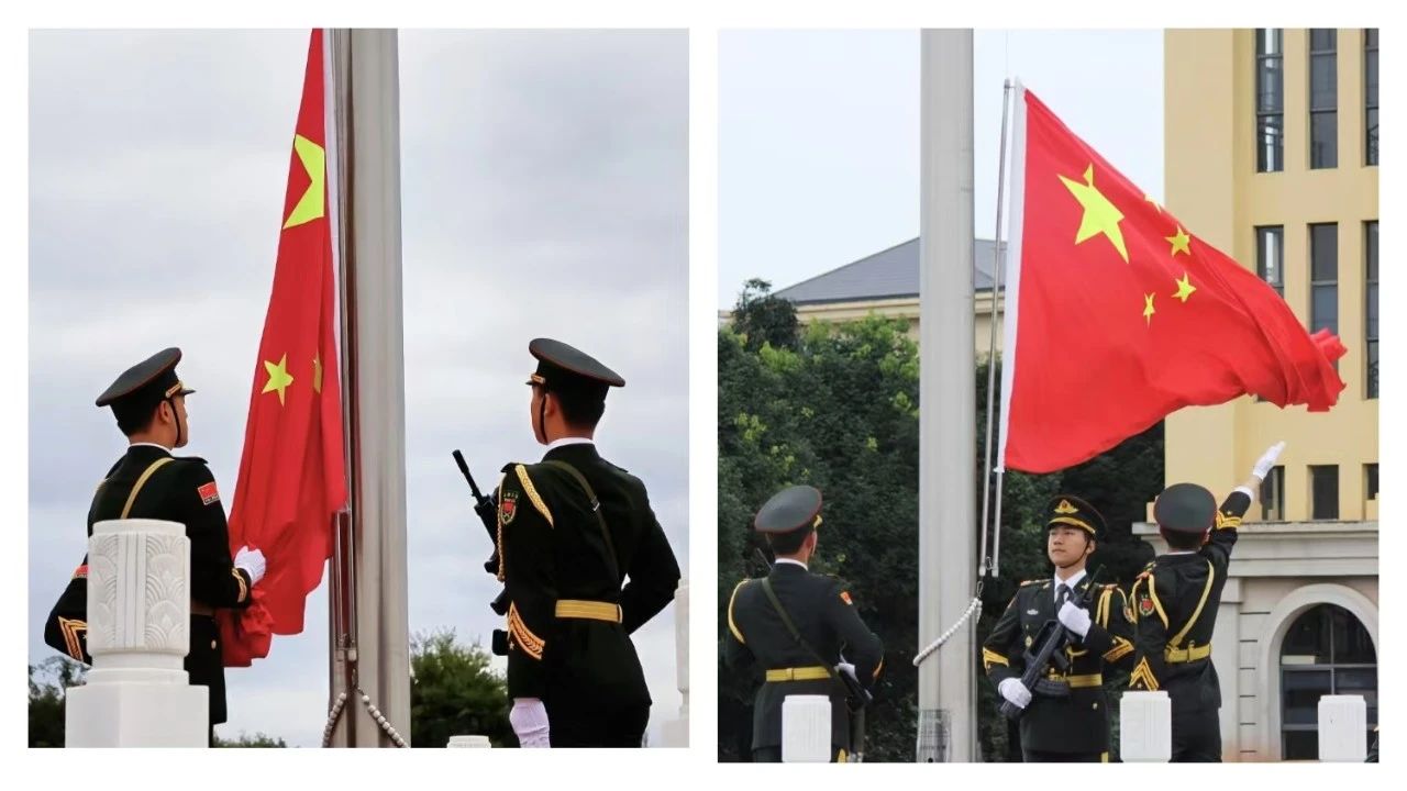 今日,我们伟大的中华人民共和国迎来了她的75岁华诞。在这举国欢腾、万众瞩目的时刻,让我们一起回顾昨天物理与天文学院师生相聚在文典广场,举行隆重的升旗仪式,向伟大的祖国致以最崇高的敬意的时刻!