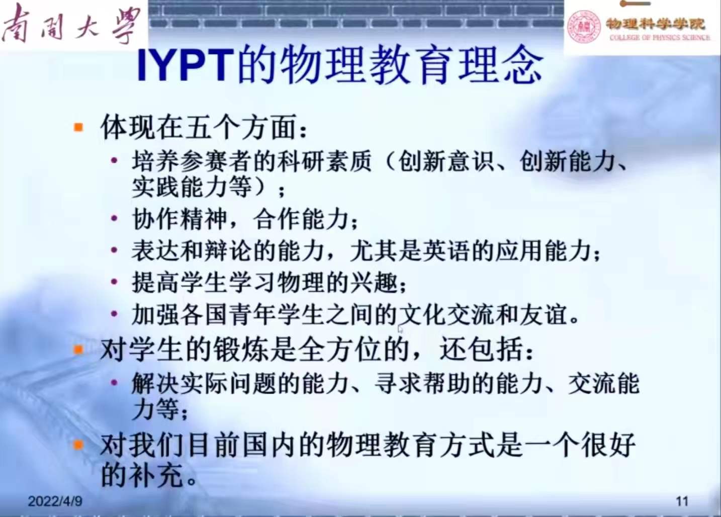 2022年4月9日,为帮助我校同学进一步了解中国大学生物理学术竞赛,提高对该竞赛的兴趣,获得有效指导,物理与天文学院邀请南开大学宋峰教授为同学们进行线上竞赛培训。