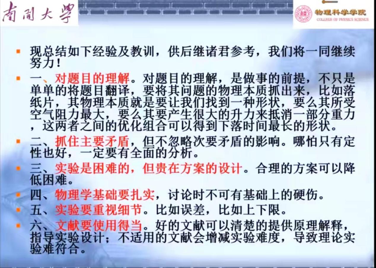 本次讲座内容贴合我校学生参与竞赛的实际需要,深入浅出、指导性强、实用性高,对培养学生对中国大学生物理学术竞赛的兴趣以及提高学生参赛能力具有重要意义。