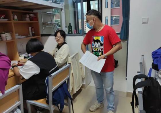 晚七点,郑波院长、周齐副书记、姜泽军副院长、江楠副院长、团委书记张维佐,学工部主任曹丽佳及各班主任,辅导员,前往学生宿舍看望新同学。今年疫情形势依旧严峻,在开展好迎新工作的同时,全院上下坚持疫情防控工作不松懈。