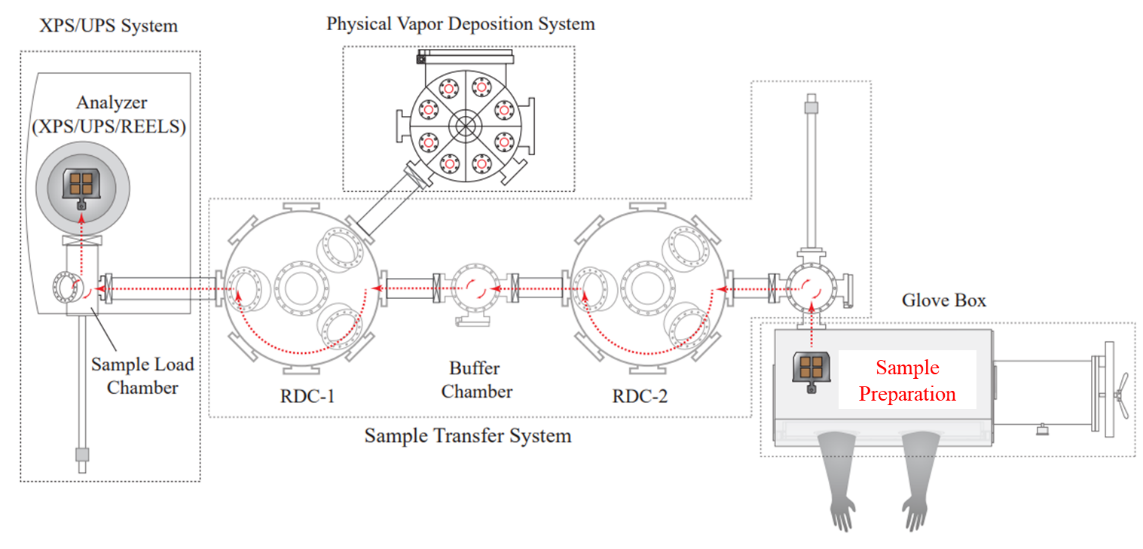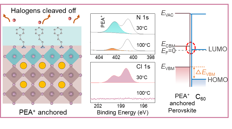 钙钛矿与电荷传输层形成无势垒接触是实现稳定、高效钙钛矿太阳能电池的关键。钙钛矿表面经过大体积阳离子钝化处理后,所制备太阳能电池的效率屡屡刷新世界纪录。尽管人们认为这些大体积阳离子(如苯乙胺盐阳离子,PEA+)在光吸收层形成2D或准2D钙钛矿,但尚不清楚这些复杂的表面化学反应是如何发生的。原位光电子能谱可以同时探测钙钛矿表面和界面经过退火后的化学和电子结构,从而有助于研究人员深入了解复杂2D或准2D钙钛矿的化学反应动力学及其界面的电子结构和能带结构。