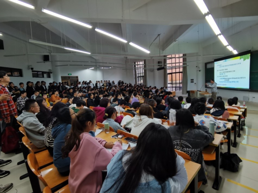 郑院长的报告概要介绍了诺贝尔奖的历史由来和特点,着重回顾了近几十年来在统计物理学领域诺贝尔奖的颁授情况,并详细介绍了国际国内统计物理学的研究现状。郑院长结合自己的学习和科研工作经历,解读了今年诺贝尔物理学奖得主之一乔治·帕里西(Giorgio Parisi)教授的科研工作情况,并就统计物理学中的标志性事件、有关趣事及未来的发展趋势进行了讲解。同学们被郑院长渊博的知识及风趣幽默的报告风格所吸引,现场座无虚席,不断爆发出热烈掌声,很多同学全程站立听完报告。通过本次讲座,同学们了解了统计物理学的具体分支和重要研究进展,大家学习物理的兴趣和热情被有效地激发起来。